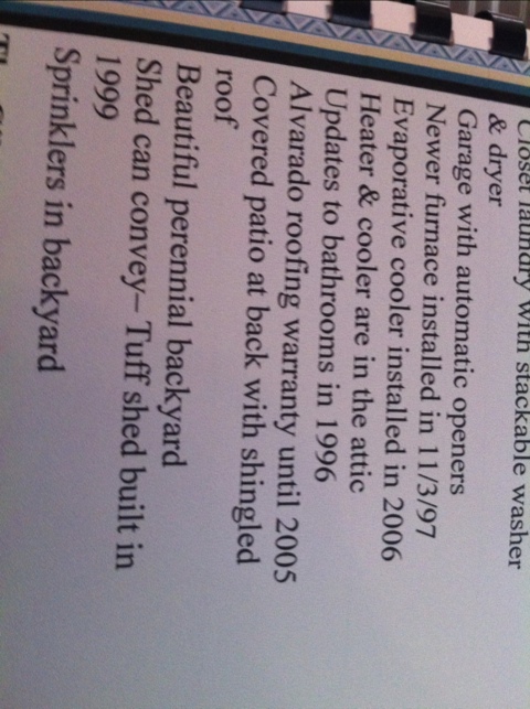 Today I was out showing homes to a first time home buyer and ran across this booklet at a home for sale. Normally booklets and flyers point out the good features of a home?? Does anyone else think it’s odd that this pointed out that there is a warranty on the roof that is going to expire in 2005? Wait a second, that was 6 years ago? At what point is a “new furnace” bullet point no longer a good thing? This was installed 14 years ago which is still better than an original furnace (this home happens to be 40-50 years old) but……